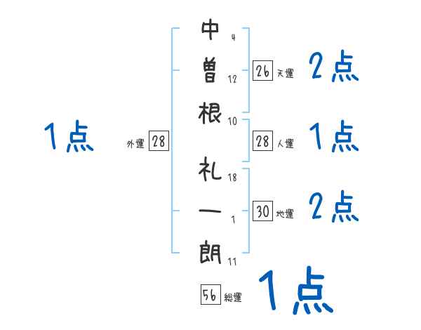 中曽根礼一朗さんの画数の鑑定結果