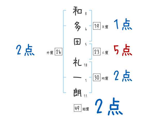和多田礼一朗さんの画数の鑑定結果