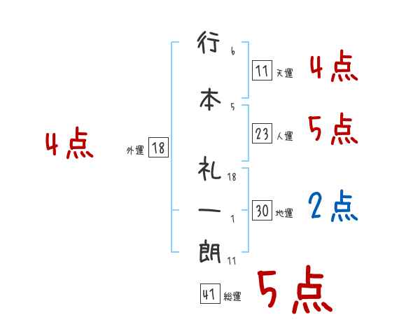 行本礼一朗さんの画数の鑑定結果