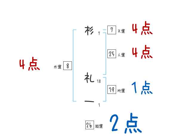 杉礼一さんの画数の鑑定結果