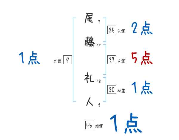 総運![]() | 尾藤礼人さんの総運は46画の1つ星!迷走することが多く苦労するかも。目先のことにとらわれないように。 あなたの人生を表す1番重要な運勢です。生涯を通じて影響する総合運となり、主に50歳以降の晩年期に影響を及ぼします。 |