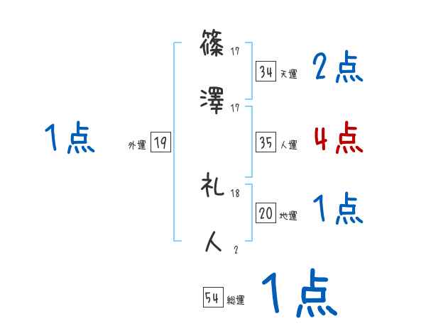 外運![]() | 篠澤礼人さんの外運は19画の1つ星!優れた才能を持ちますが、協調性が足りないことも。周りの人と協力する事を意識しましょう。 生活面を象徴する運勢です。外部から受ける影響力を表し、結婚運、家庭運や職場、環境への順応性を表します。 |