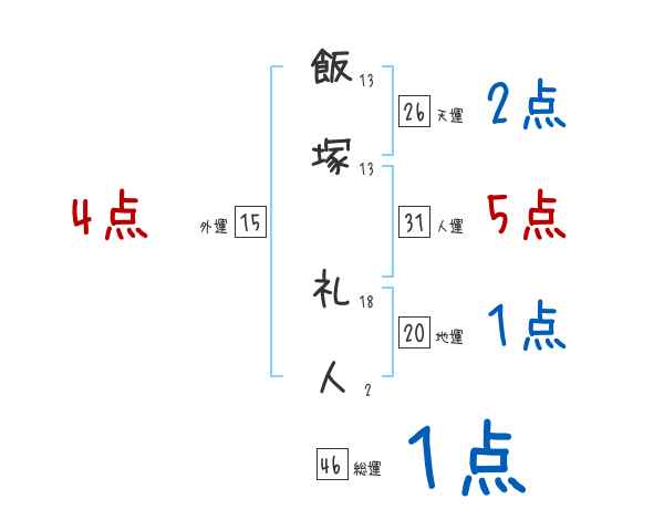 飯塚礼人さんの画数の鑑定結果