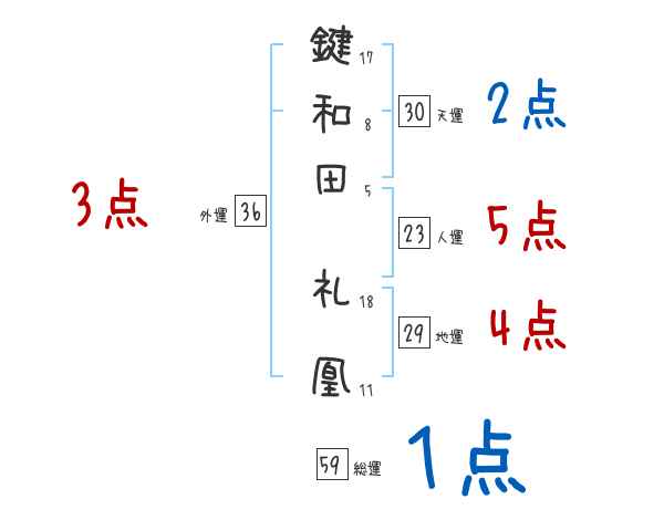 鍵和田礼凰さんの画数の鑑定結果