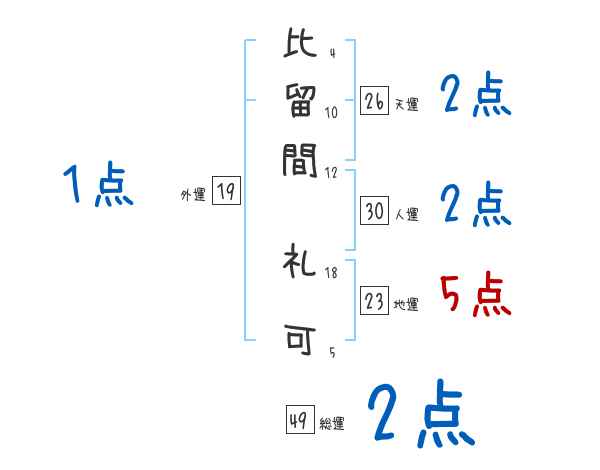 比留間礼可さんの画数の鑑定結果