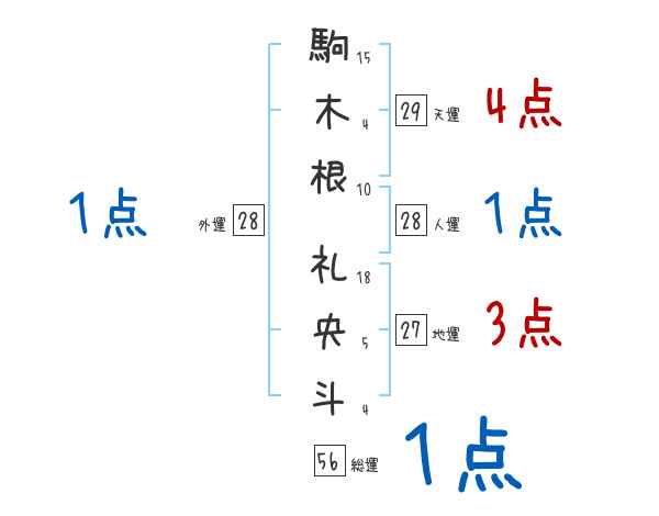 駒木根礼央斗さんの画数の鑑定結果