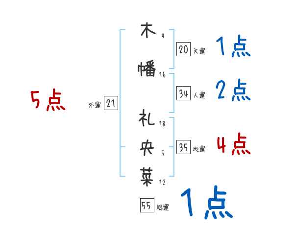 木幡礼央菜さんの画数の鑑定結果