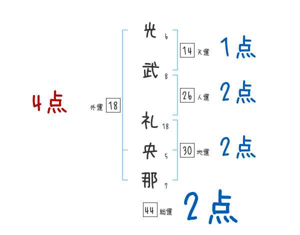 天運![]() | 光武礼央那さんの天運は14画の1つ星!人に対して優しいがストレスを溜め込みがち。人間関係のトラブルを避けるよう気をつけましょう。 家系が持つ宿命的な運勢を表します。祖先から受け継いだ苗字ですので自分の力が及びません。家柄を象徴します。 |