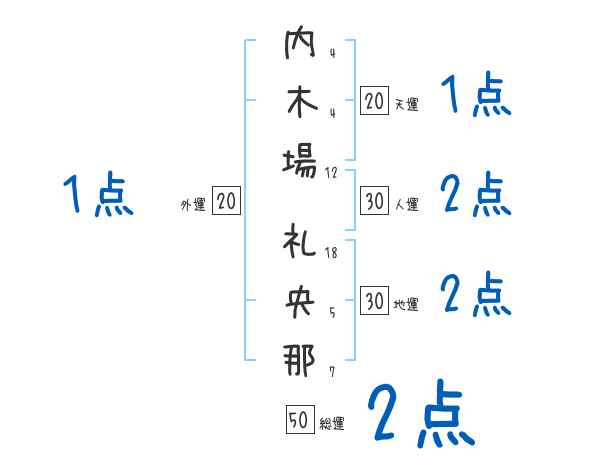 内木場礼央那さんの画数の鑑定結果