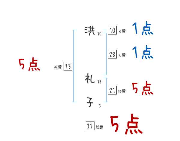 洪礼子さんの画数の鑑定結果