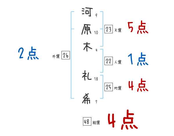 外運![]() | 河原木礼希さんの外運は26画の2つ星!波瀾万丈かも。信頼できる人を大事にしましょう。 生活面を象徴する運勢です。外部から受ける影響力を表し、結婚運、家庭運や職場、環境への順応性を表します。 |