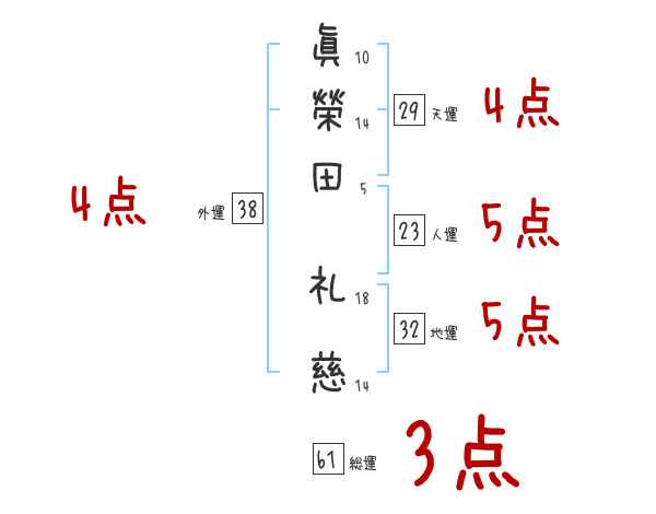 眞榮田礼慈さんの画数の鑑定結果