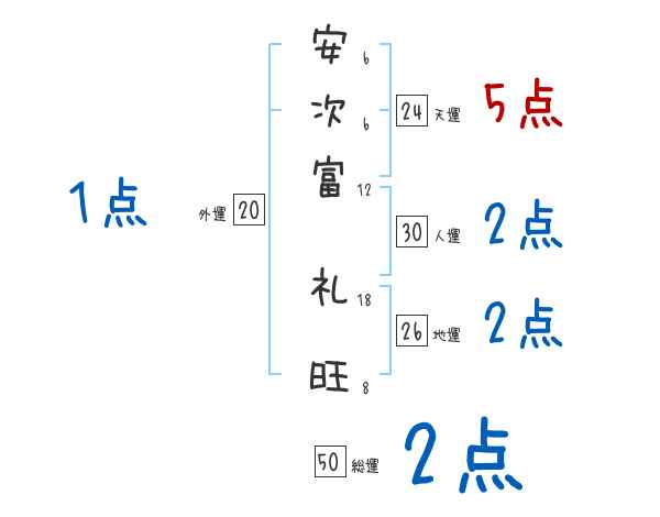 安次富礼旺さんの画数の鑑定結果