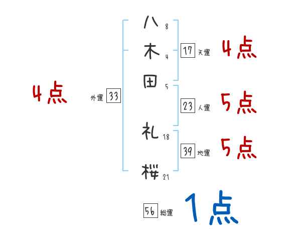 外運![]() | 八木田礼桜さんの外運は33画の4つ星!権力志向でプライドが高い。勇気があり運を切り開き成功する。 生活面を象徴する運勢です。外部から受ける影響力を表し、結婚運、家庭運や職場、環境への順応性を表します。 |