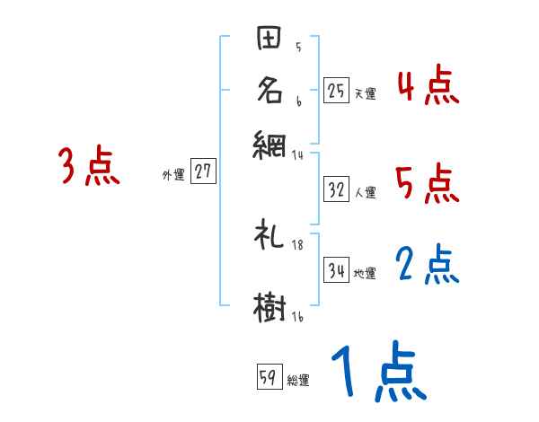 人運![]() | 田名網礼樹さんの人運は32画の5つ星!柔軟性があり成功する。チャンスが多く金運が良い。 性格や才能などを表す2番目に重要な運勢です。人間関係や協調性、社会的な成功に影響します。主に20歳から50歳ぐらいまでの中年期の運勢を表します。 |