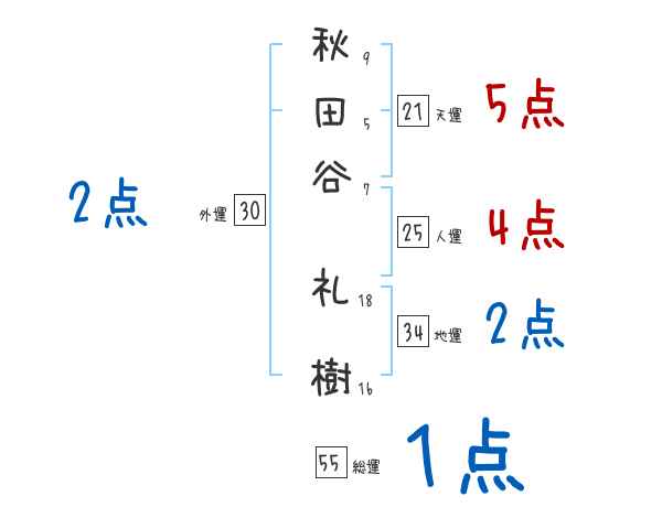 秋田谷礼樹さんの画数の鑑定結果