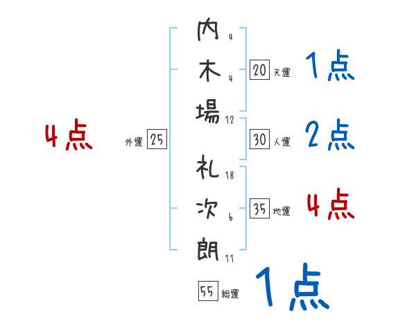 内木場礼次朗さんの画数の鑑定結果