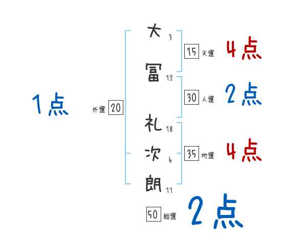 地運![]() | 大冨礼次朗さんの地運は35画の4つ星!温厚な性格で感受性が高い。穏和な性格で人望が厚い。 個性を表す基礎的な運勢です。性格形成や対人関係、行動力など家庭環境に影響されます。主に誕生してから20歳くらいまでの若年期の運勢を表します。 |