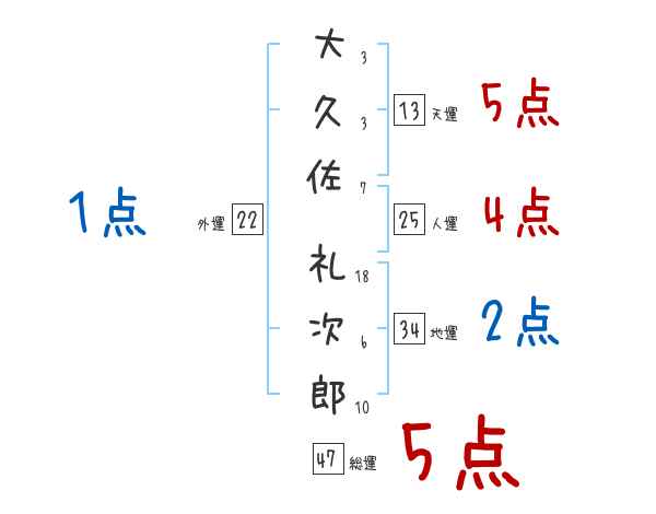 大久佐礼次郎さんの画数の鑑定結果