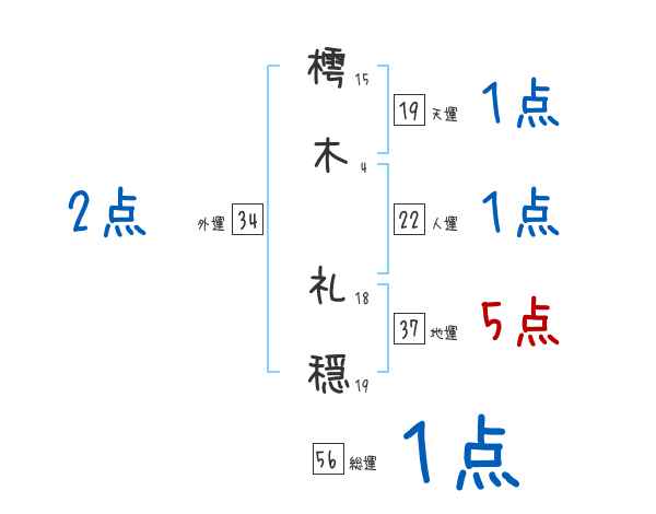 樗木礼穏さんの画数の鑑定結果