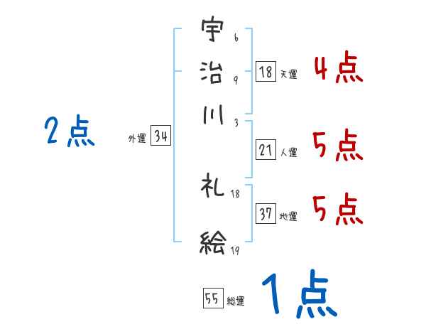 人運![]() | 宇治川礼絵さんの人運は21画の5つ星!統率力がある。独立し成功する。名誉を手に入れる。 性格や才能などを表す2番目に重要な運勢です。人間関係や協調性、社会的な成功に影響します。主に20歳から50歳ぐらいまでの中年期の運勢を表します。 |