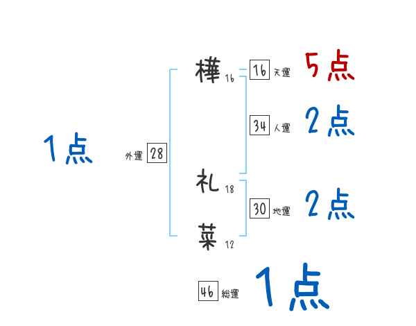樺礼菜さんの画数の鑑定結果