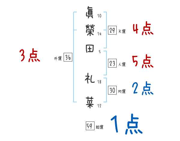 眞榮田礼菜さんの画数の鑑定結果