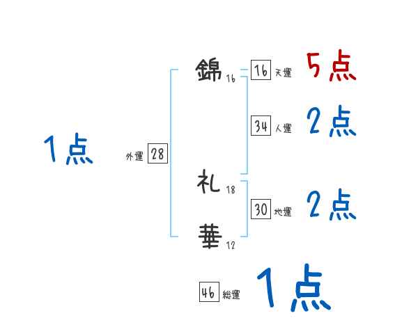 錦礼華さんの画数の鑑定結果