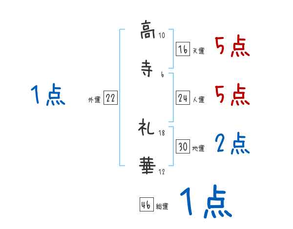 天運![]() | 高寺礼華さんの天運は16画の5つ星!人望が厚く大きく発展する。逆転成功が見える。 家系が持つ宿命的な運勢を表します。祖先から受け継いだ苗字ですので自分の力が及びません。家柄を象徴します。 |