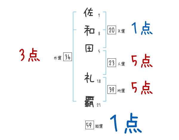 外運![]() | 佐和田礼覇さんの外運は36画の3つ星!先見性が豊かです。多少神経質で苦労することも。 生活面を象徴する運勢です。外部から受ける影響力を表し、結婚運、家庭運や職場、環境への順応性を表します。 |
