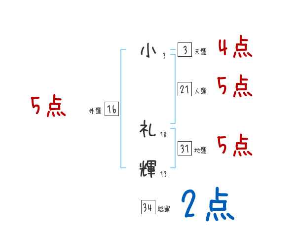 小礼輝さんの画数の鑑定結果