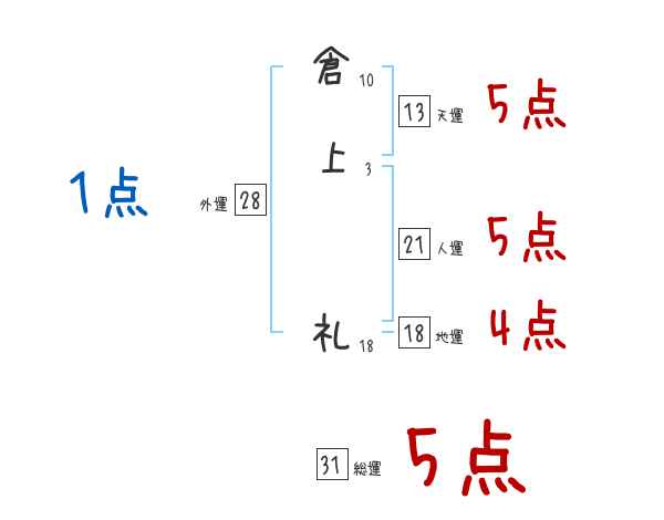 倉上礼さんの画数の鑑定結果