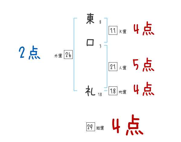 東口礼さんの画数の鑑定結果