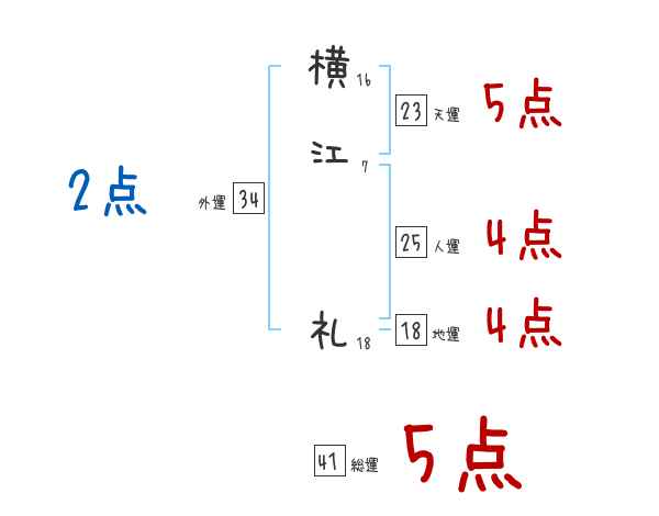 横江礼さんの画数の鑑定結果
