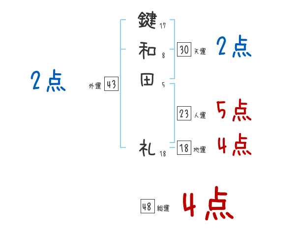 天運![]() | 鍵和田礼さんの天運は30画の2つ星!浮き沈みの激しさに注意しましょう。 家系が持つ宿命的な運勢を表します。祖先から受け継いだ苗字ですので自分の力が及びません。家柄を象徴します。 |
