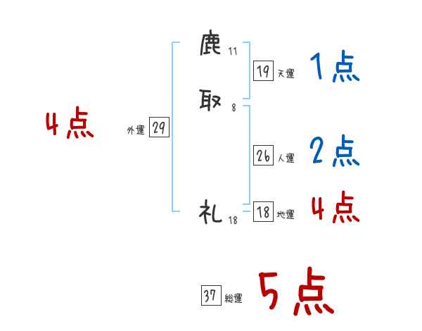 天運![]() | 鹿取礼さんの天運は19画の1つ星!優れた才能を持ちますが、協調性が足りないことも。周りの人と協力する事を意識しましょう。 家系が持つ宿命的な運勢を表します。祖先から受け継いだ苗字ですので自分の力が及びません。家柄を象徴します。 |