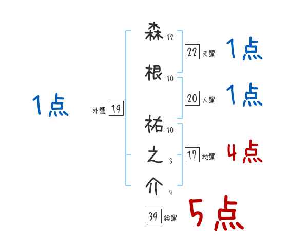 総運![]() | 森根祐之介さんの総運は39画の5つ星!社交性に優れ人望が厚い。人の上に立ち成功する。 あなたの人生を表す1番重要な運勢です。生涯を通じて影響する総合運となり、主に50歳以降の晩年期に影響を及ぼします。 |