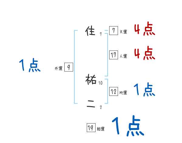 天運![]() | 住祐二さんの天運は7画の4つ星!強い意志や信念を持ち独立心が強い。自立する。 家系が持つ宿命的な運勢を表します。祖先から受け継いだ苗字ですので自分の力が及びません。家柄を象徴します。 |