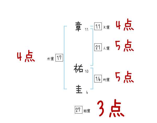 章祐圭さんの画数の鑑定結果