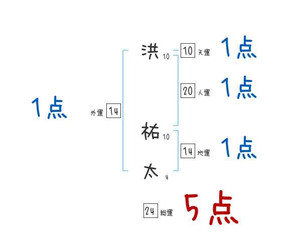 洪祐太さんの画数の鑑定結果