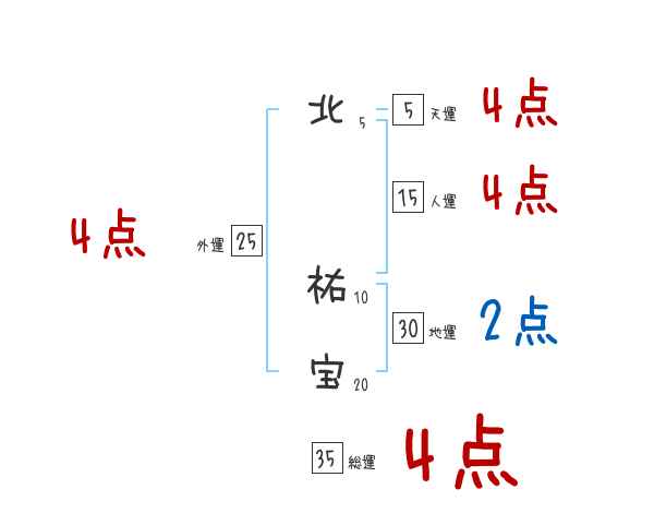 北祐宝さんの画数の鑑定結果