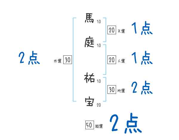 馬庭祐宝さんの画数の鑑定結果