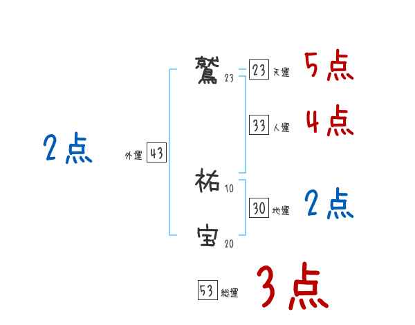 鷲祐宝さんの画数の鑑定結果