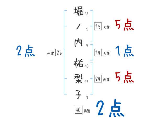 堀ノ内祐梨子さんの画数の鑑定結果