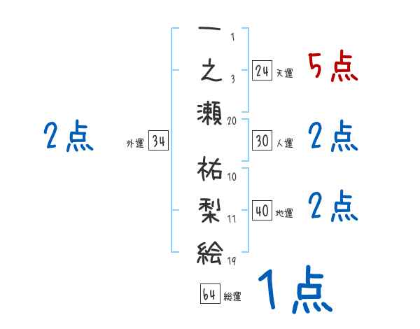 一之瀬祐梨絵さんの画数の鑑定結果