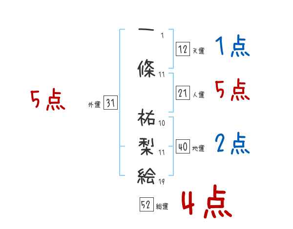 一條祐梨絵さんの画数の鑑定結果