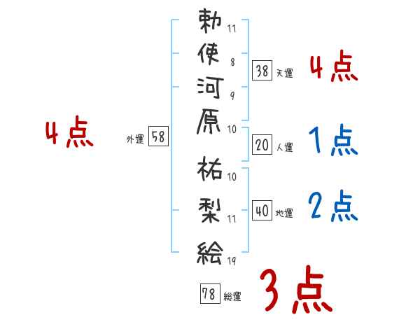 勅使河原祐梨絵さんの外運は58画の4つ星