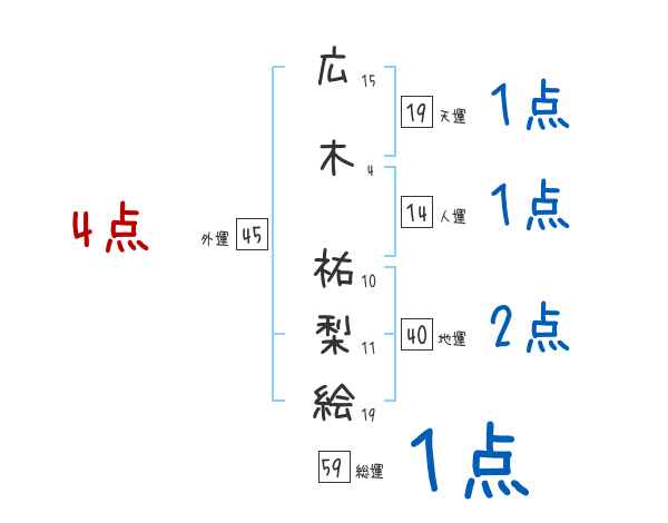 外運![]() | 広木祐梨絵さんの外運は45画の4つ星!もくもくと物事を進め達成する。地味な努力家。 生活面を象徴する運勢です。外部から受ける影響力を表し、結婚運、家庭運や職場、環境への順応性を表します。 |