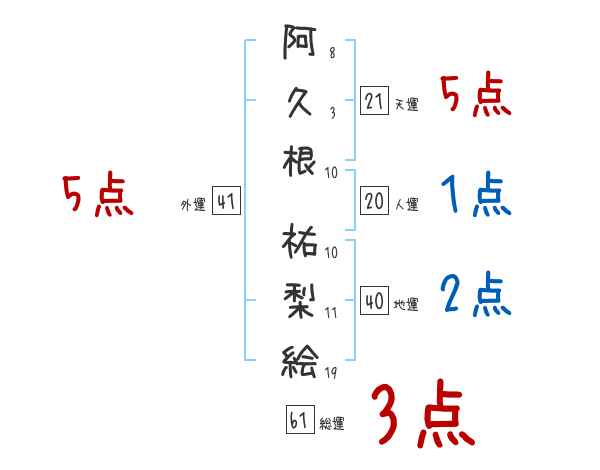 阿久根祐梨絵さんの画数の鑑定結果
