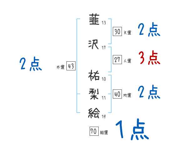 韮沢祐梨絵さんの画数の鑑定結果